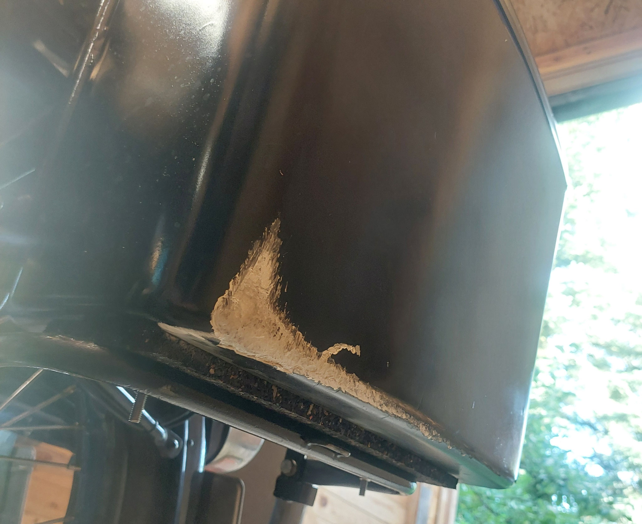 Eine Beule auf der rechten Seite im Tank aber auch eine verbogene linke Fußraste und eine Schmarre am linken Seite am Seitenkoffer.